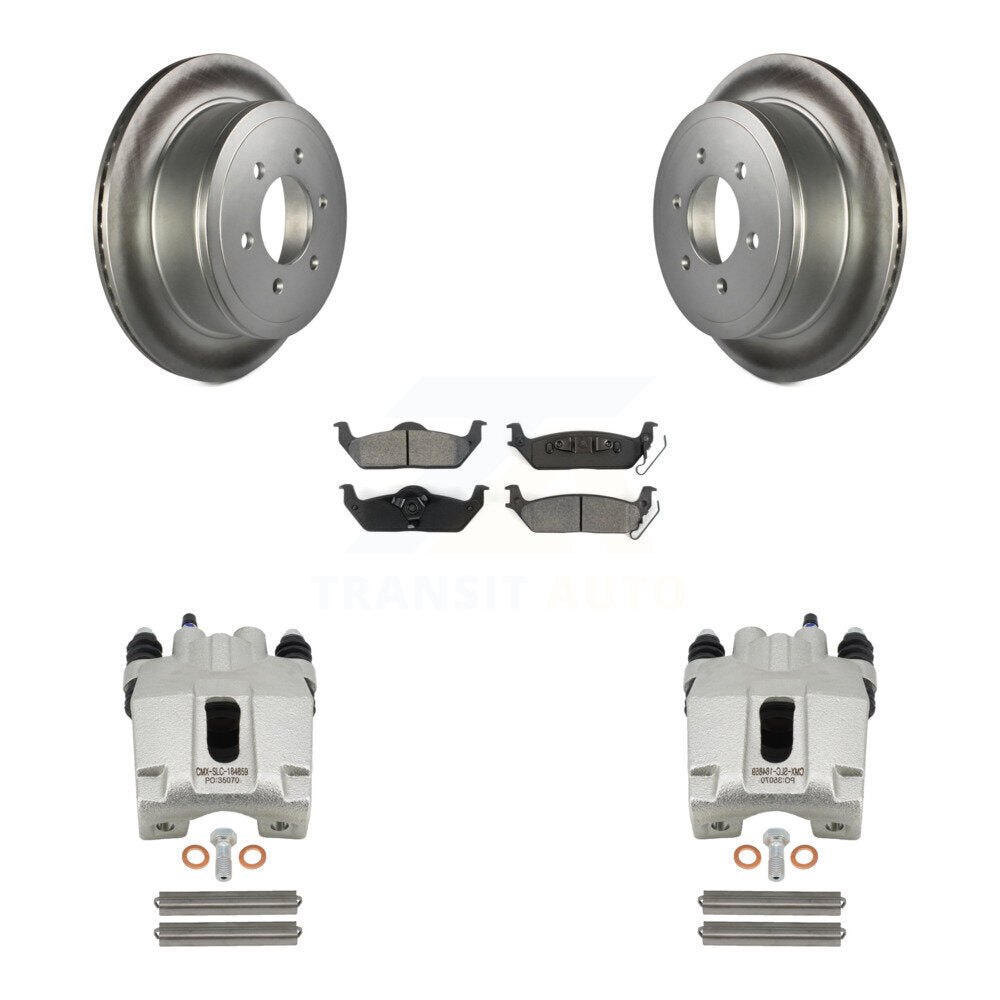 Rear Disc Brake Caliper Coated Rotors And Semi-Metallic Pads Kit For Ford F-150 Lincoln Mark LT KCG-100094S