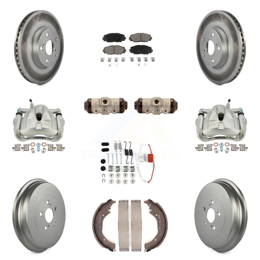 Front Rear Disc Brake Caliper Coated Rotors Drums Ceramic Pads Shoes Wheel Cylinders And Hardware Kit (11Pc) For 2009-2013 Toyota Corolla KCG-100353C