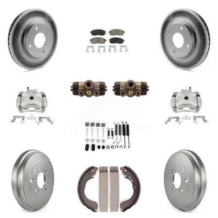 Front Rear Disc Brake Caliper Coated Rotors Drums Ceramic Pads Shoes Wheel Cylinders And Hardware Kit (11Pc) For Nissan Sentra KCG-100363C