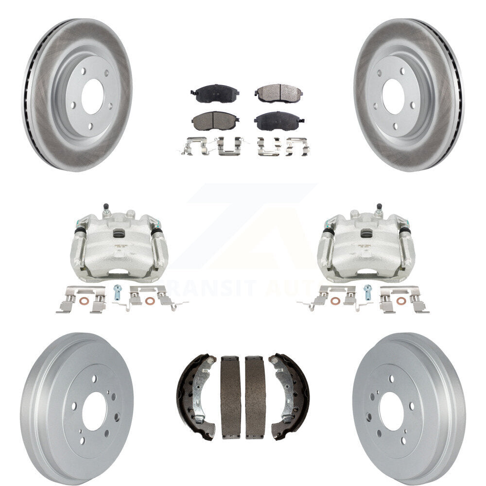 Front Rear Disc Brake Caliper Coated Rotors Drums Semi-Metallic Pads Kit (8Pc) For 2017-2019 Nissan Sentra Turbocharged KCG-100391P