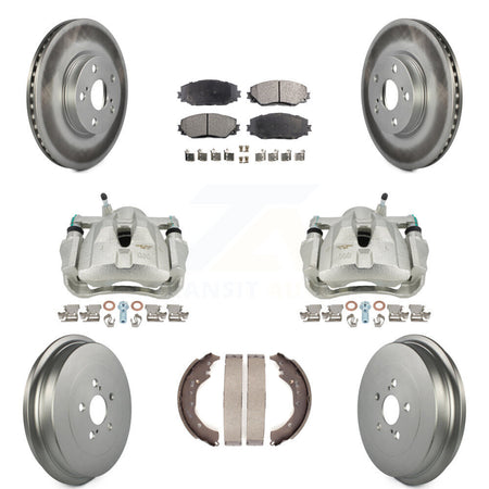 Front Rear Disc Brake Caliper Coated Rotors Drums Ceramic Pads Kit (8Pc) For Toyota Corolla KCG-100401T