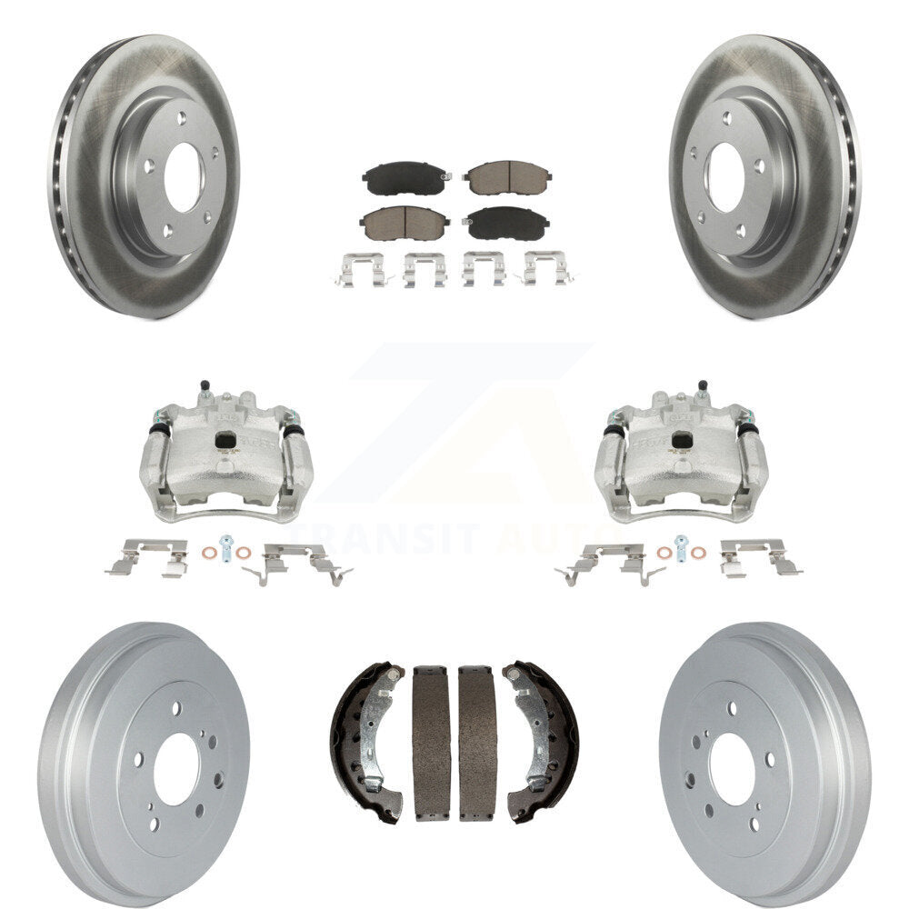 Front Rear Disc Brake Caliper Coated Rotors Drums Ceramic Pads Kit (8Pc) For Nissan Sentra KCG-100435C