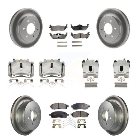 Front Rear Disc Brake Caliper Coated Rotors And Semi-Metallic Pads Kit (10Pc) For Ford F-150 Lincoln Mark LT 4WD KCG-100866P