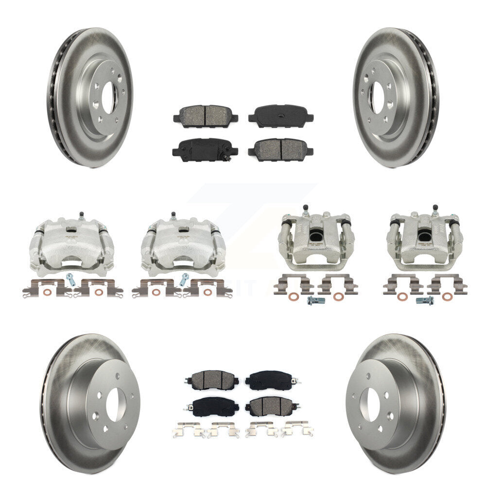 Front Rear Disc Brake Caliper Coated Rotors And Semi-Metallic Pads Kit (10Pc) For Nissan LEAF KCG-101013S