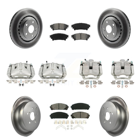 Front Rear Disc Brake Caliper Coated Rotors And Semi-Metallic Pads Kit (10Pc) For Toyota Highlander Sienna Lexus RX350 KCG-101066S
