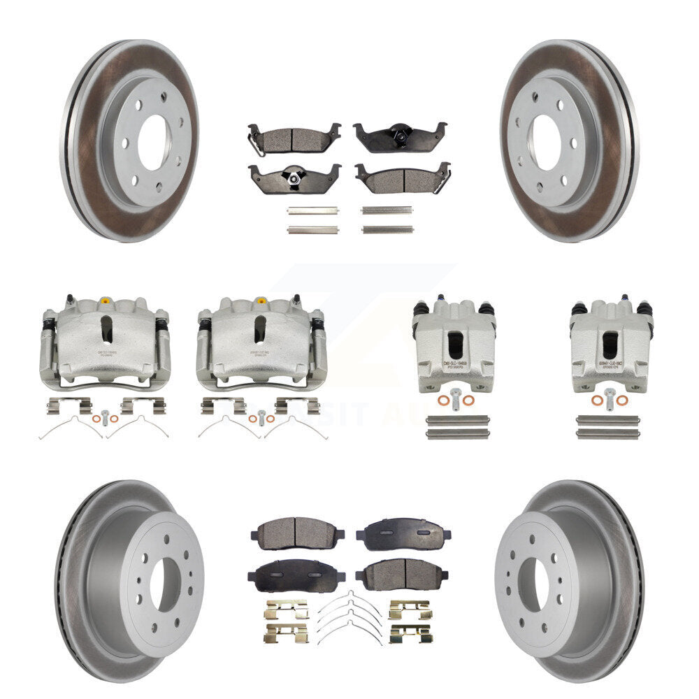 Front Rear Disc Brake Caliper Coated Rotors And Ceramic Pads Kit (10Pc) For Ford F-150 Lincoln Mark LT 4WD KCG-101090T