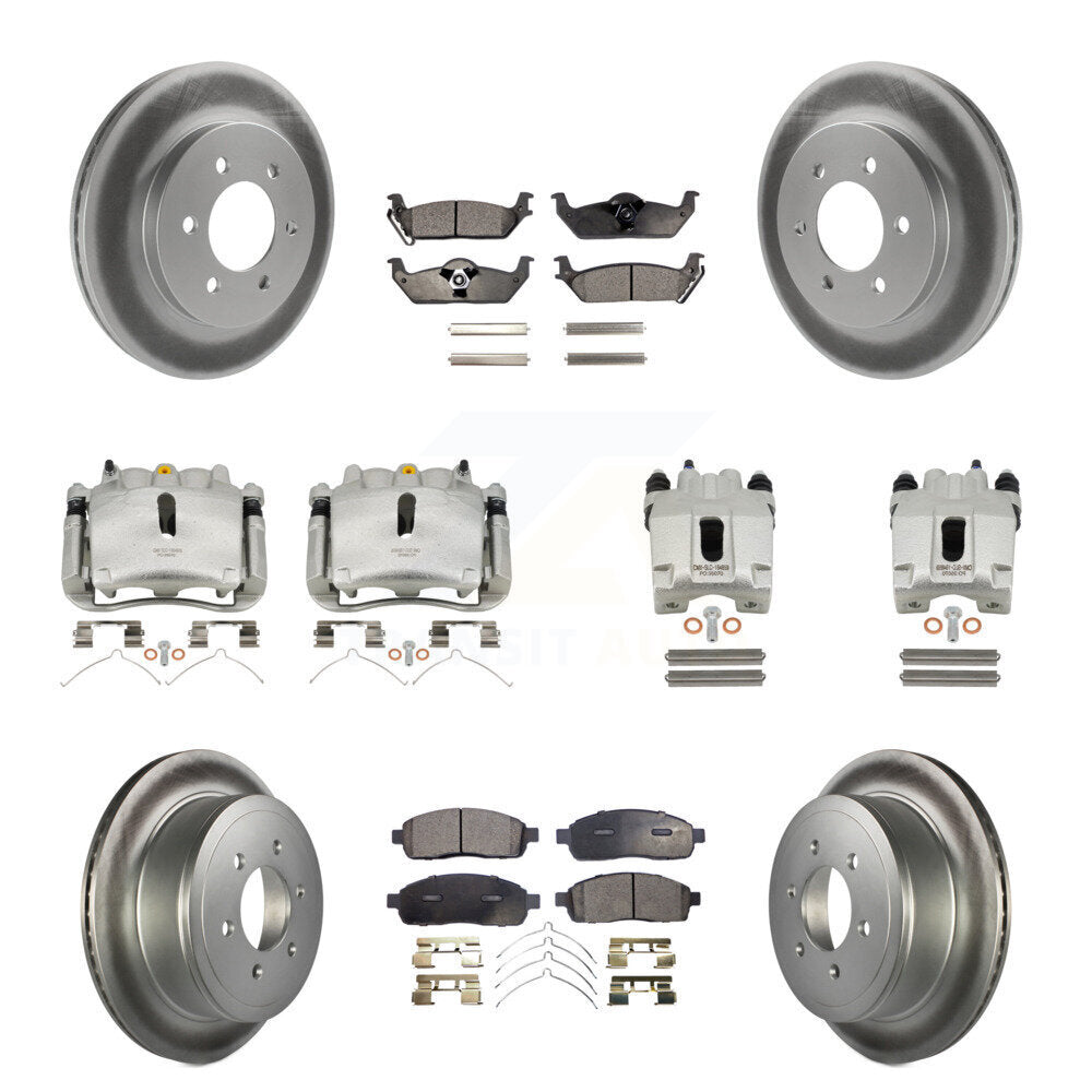 Front Rear Disc Brake Caliper Coated Rotors And Ceramic Pads Kit (10Pc) For Ford F-150 Lincoln Mark LT 4WD KCG-101092T