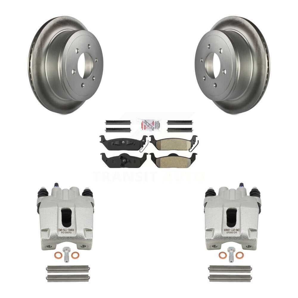 Rear Disc Brake Caliper Coated Rotors And Semi-Metallic Pads Kit For Ford F-150 Lincoln Mark LT KCG-101130N