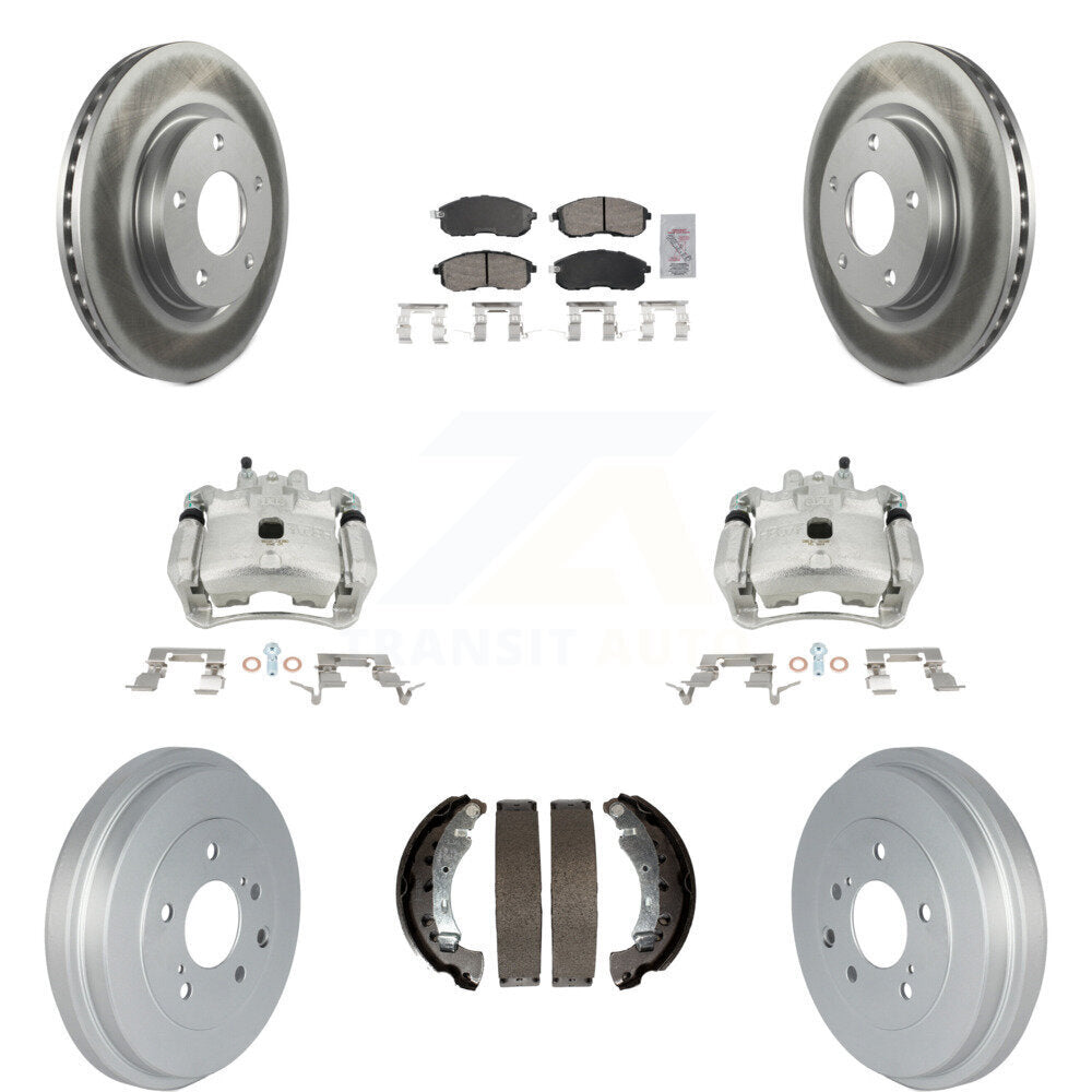 Front Rear Disc Brake Caliper Coated Rotors Drums Ceramic Pads Kit (8Pc) For Nissan Sentra KCG-101422N