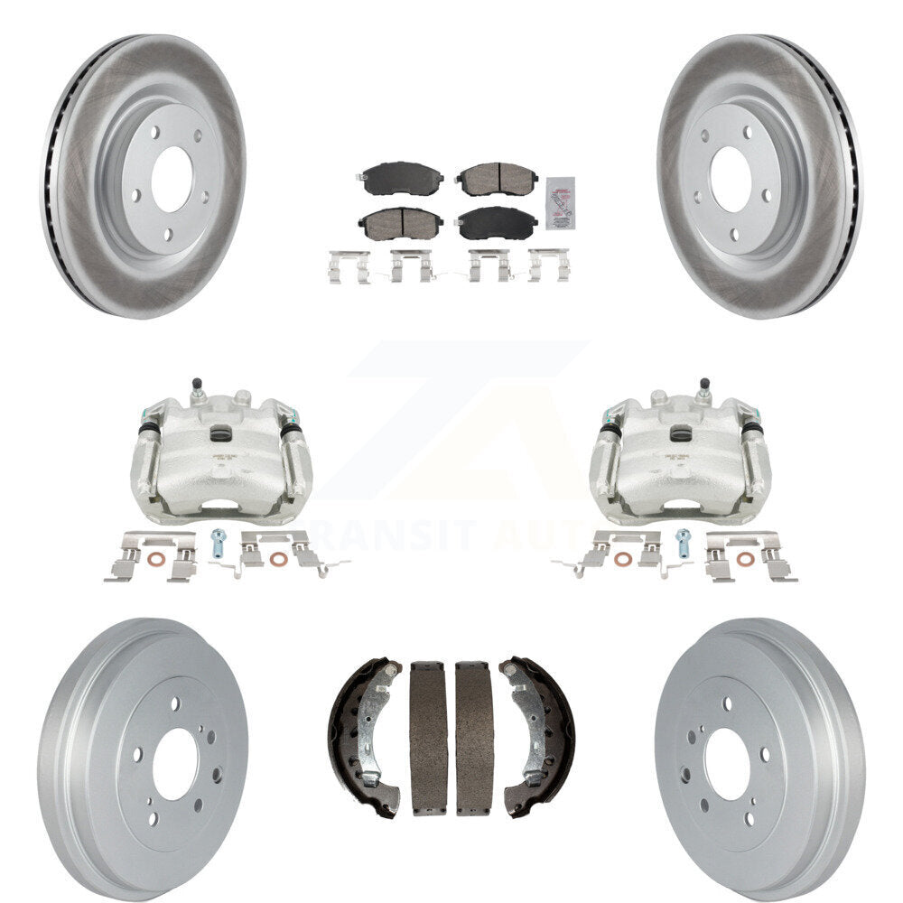Front Rear Disc Brake Caliper Coated Rotors Drums Ceramic Pads Kit (8Pc) For 2017-2019 Nissan Sentra Turbocharged KCG-101424N