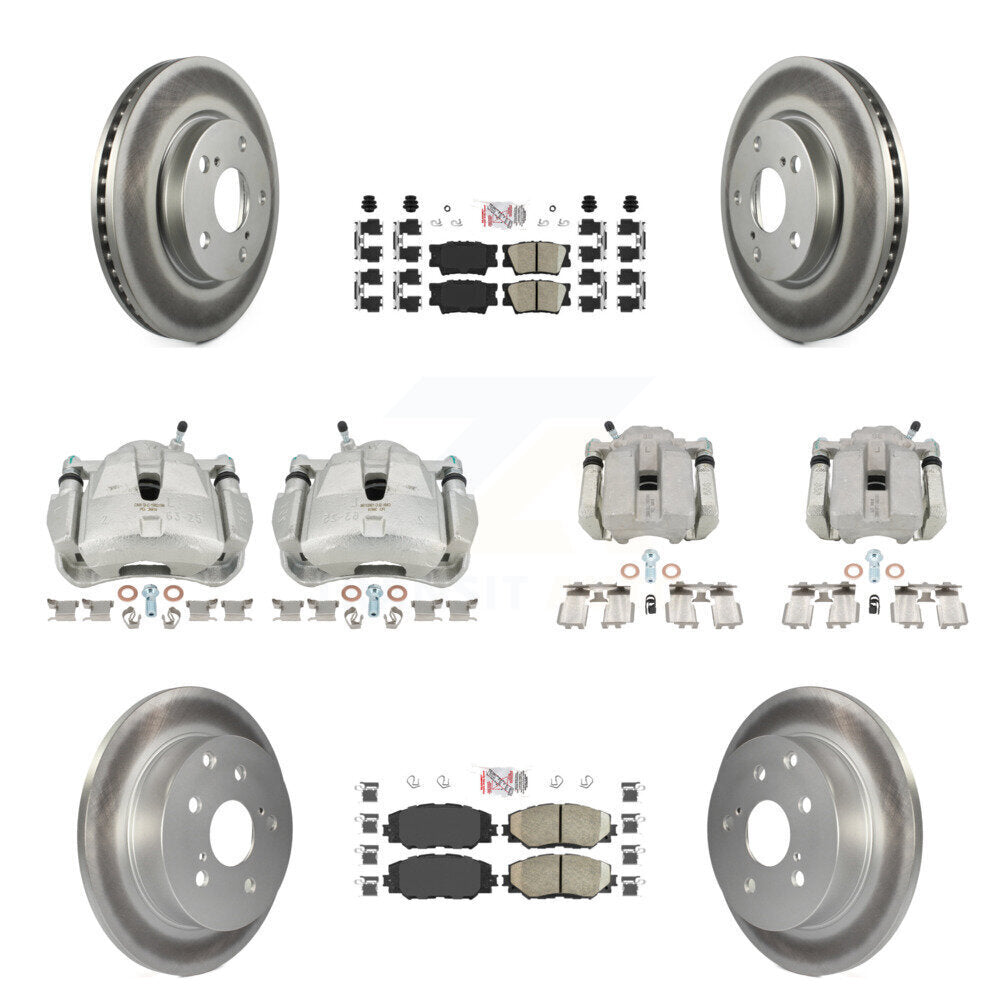 Front Rear Disc Brake Caliper Coated Rotors And Ceramic Pads Kit (10Pc) For Toyota RAV4 Without 3rd Row Seating KCG-102031N