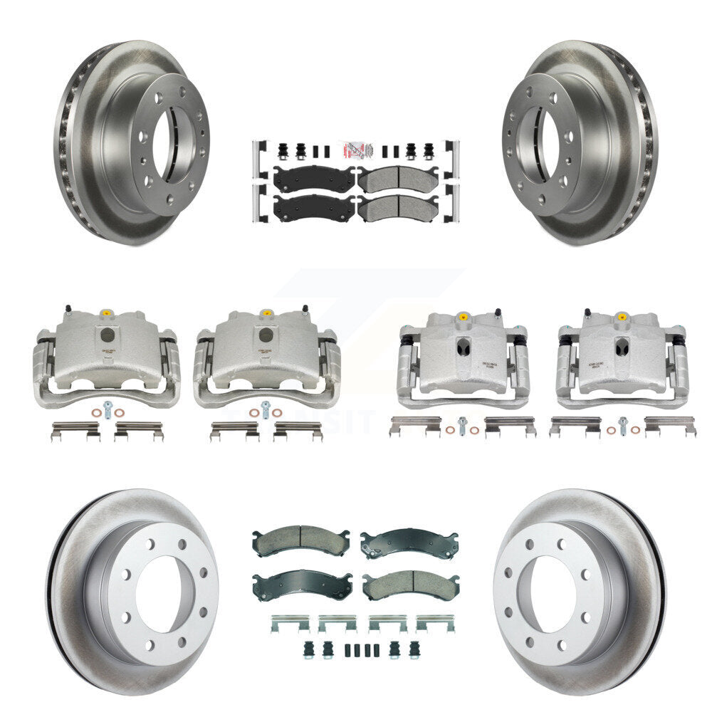 Front Rear Disc Brake Caliper Coated Rotors And Semi-Metallic Pads Kit (10Pc) For Chevrolet Silverado 2500 HD GMC Sierra Hummer H2 1500 Suburban Yukon XL Avalanche Classic KCG-102666N
