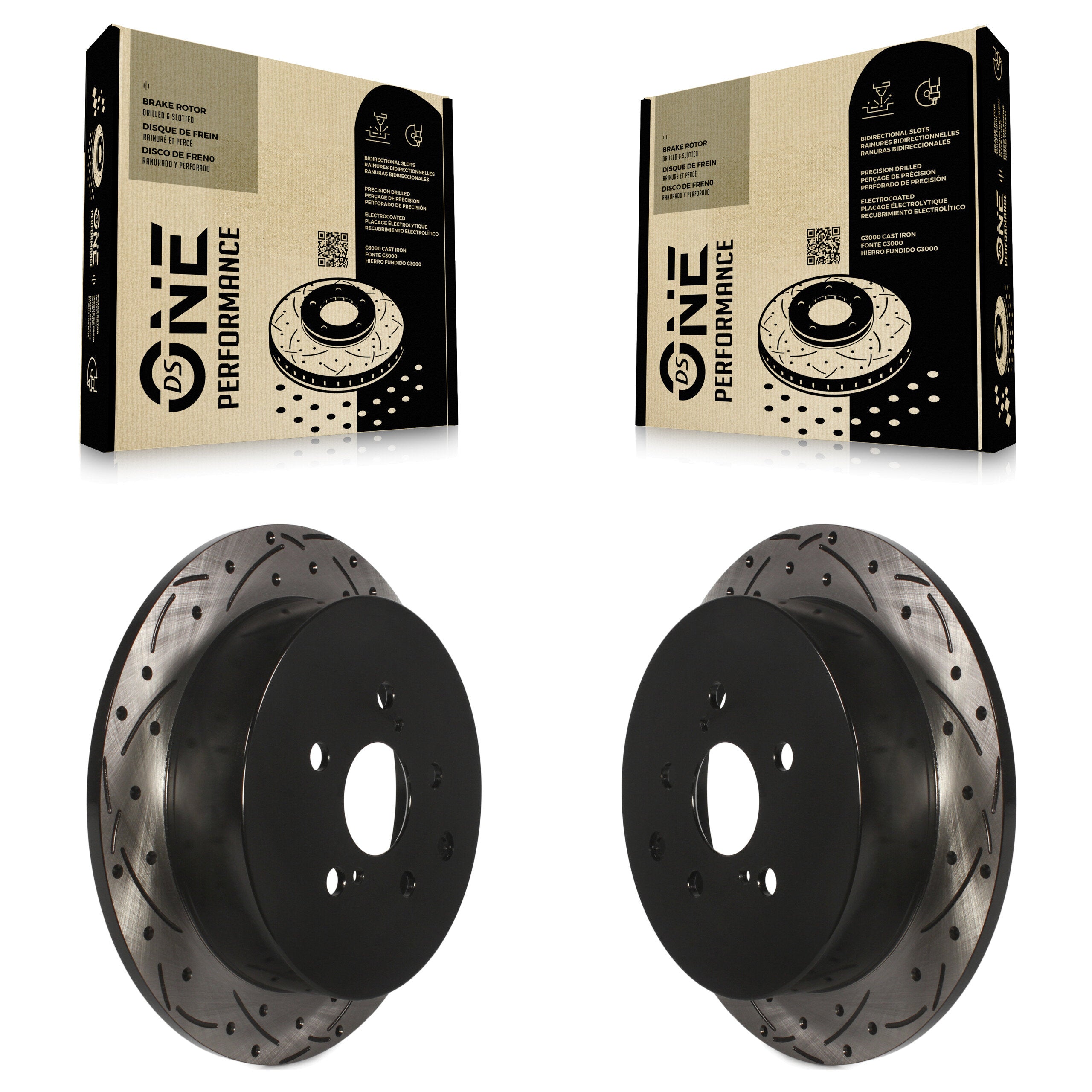 - 2x Rear Coated Drilled Slotted DS-One Disc Brake Rotor (Both Sides)
