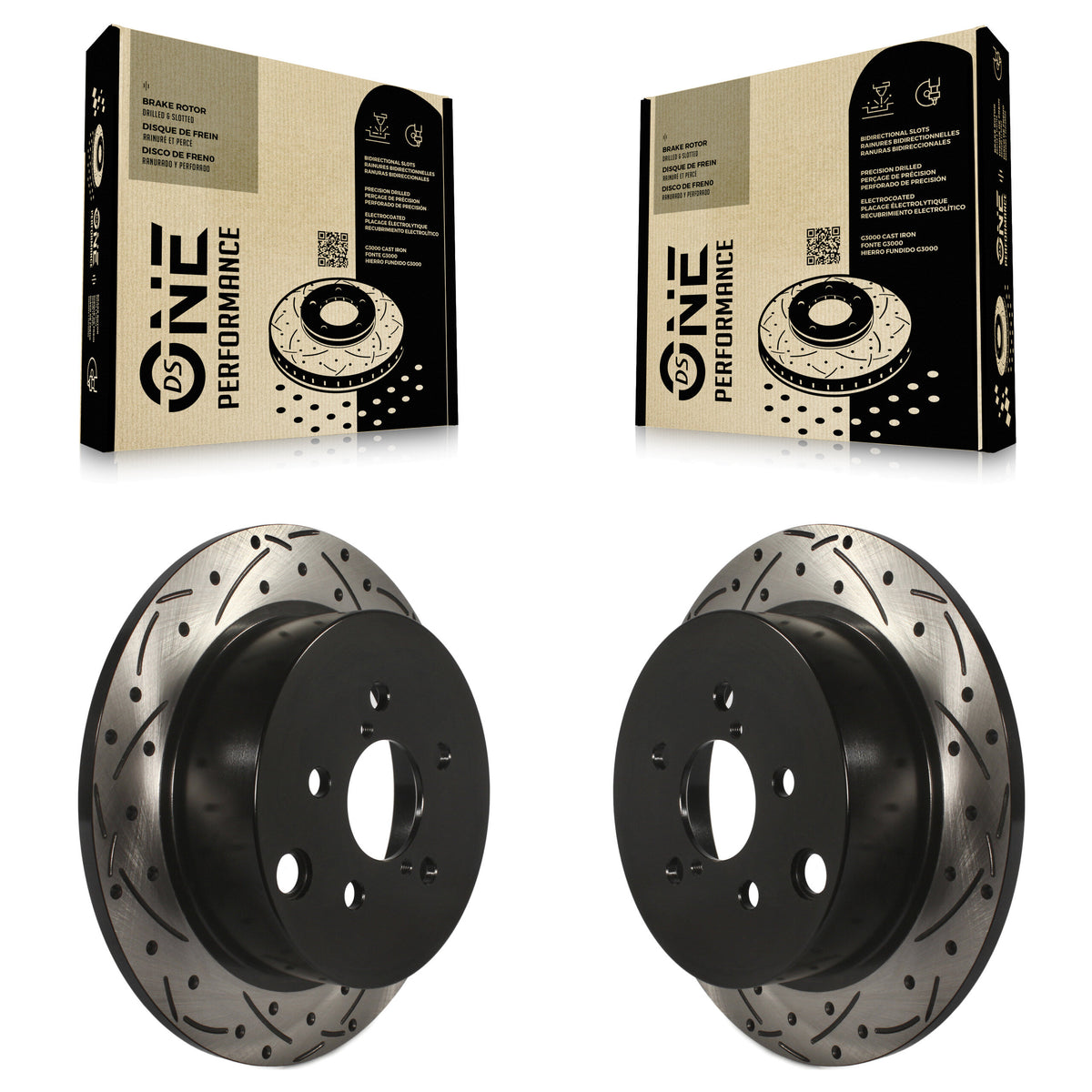 - 2x Rear Coated Drilled Slotted DS-One Disc Brake Rotor (Both Sides)