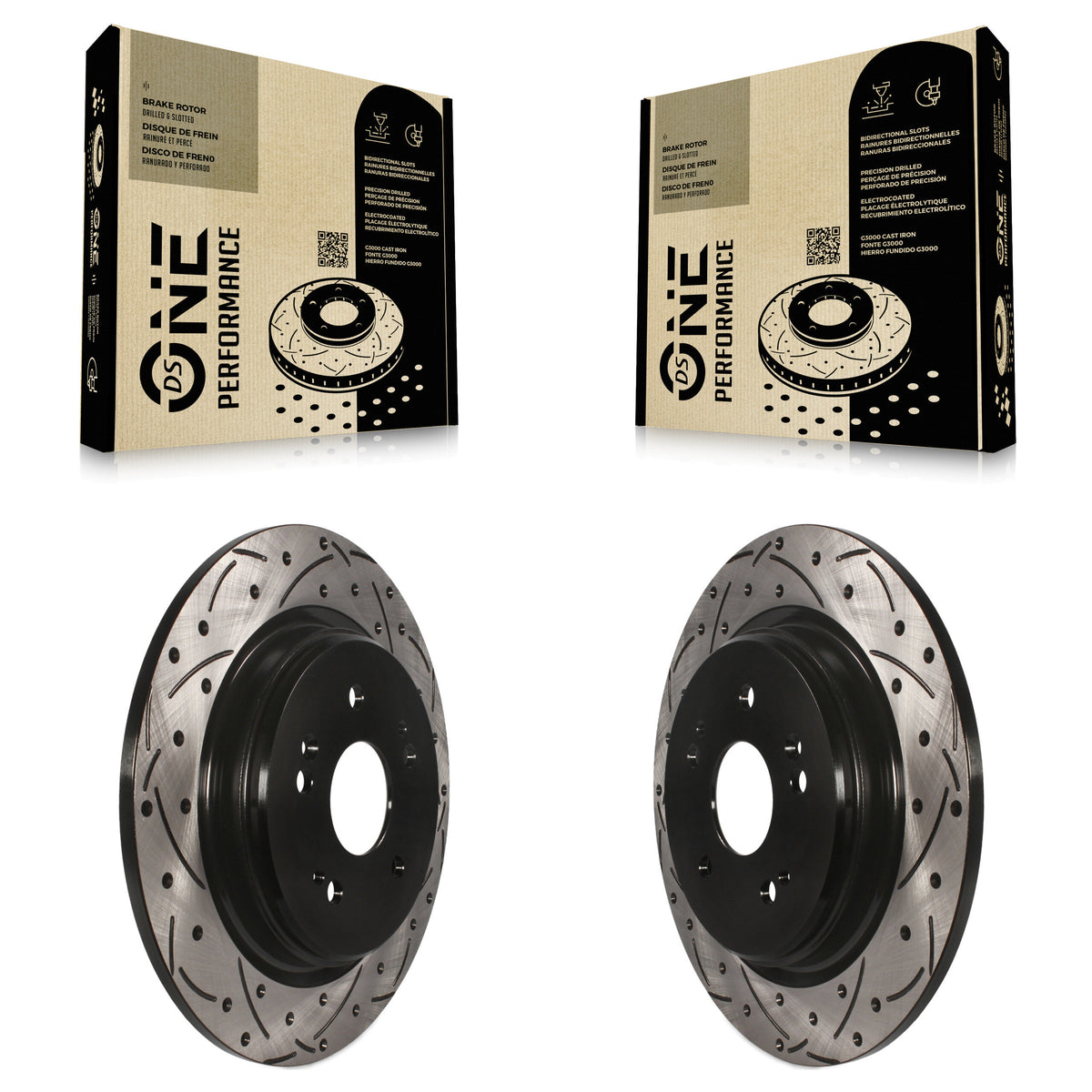 - 2x Rear Coated Drilled Slotted DS-One Disc Brake Rotor (Both Sides)