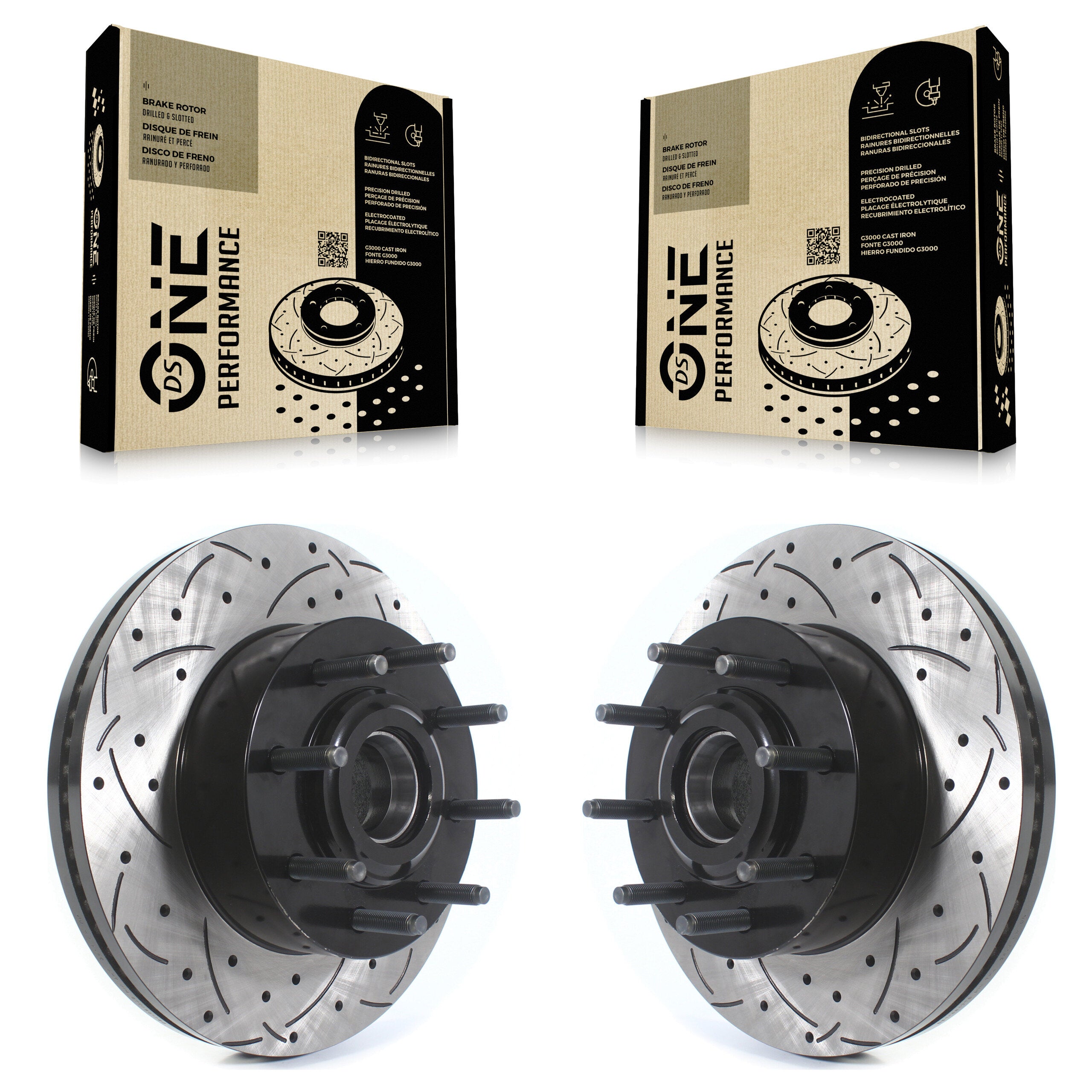- 2x Front Coated Drilled Slotted DS-One Disc Brake Rotor and Hub Assembly (Both Sides)