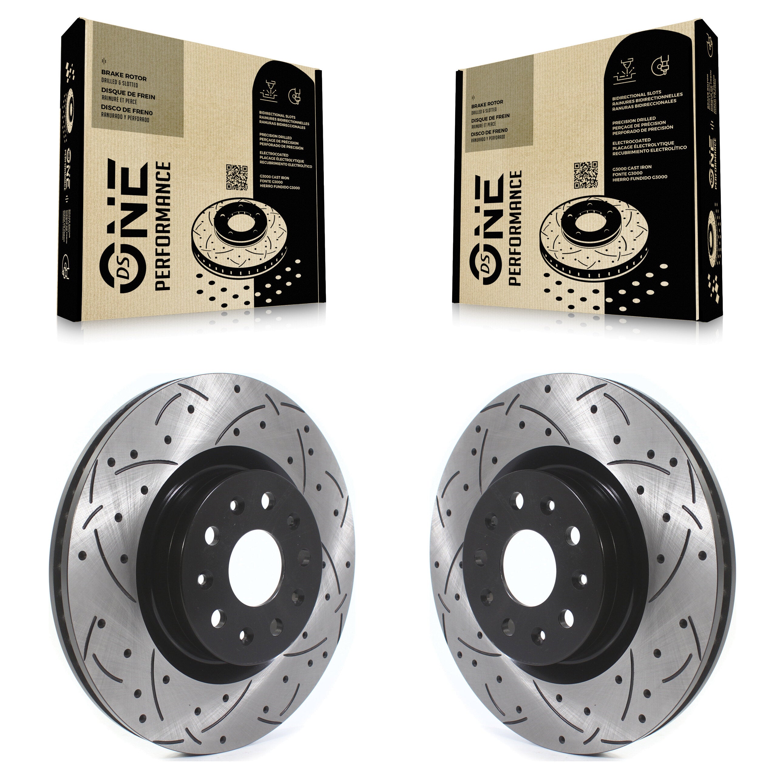 - 2x Front Coated Drilled Slotted DS-One Disc Brake Rotor (Both Sides)