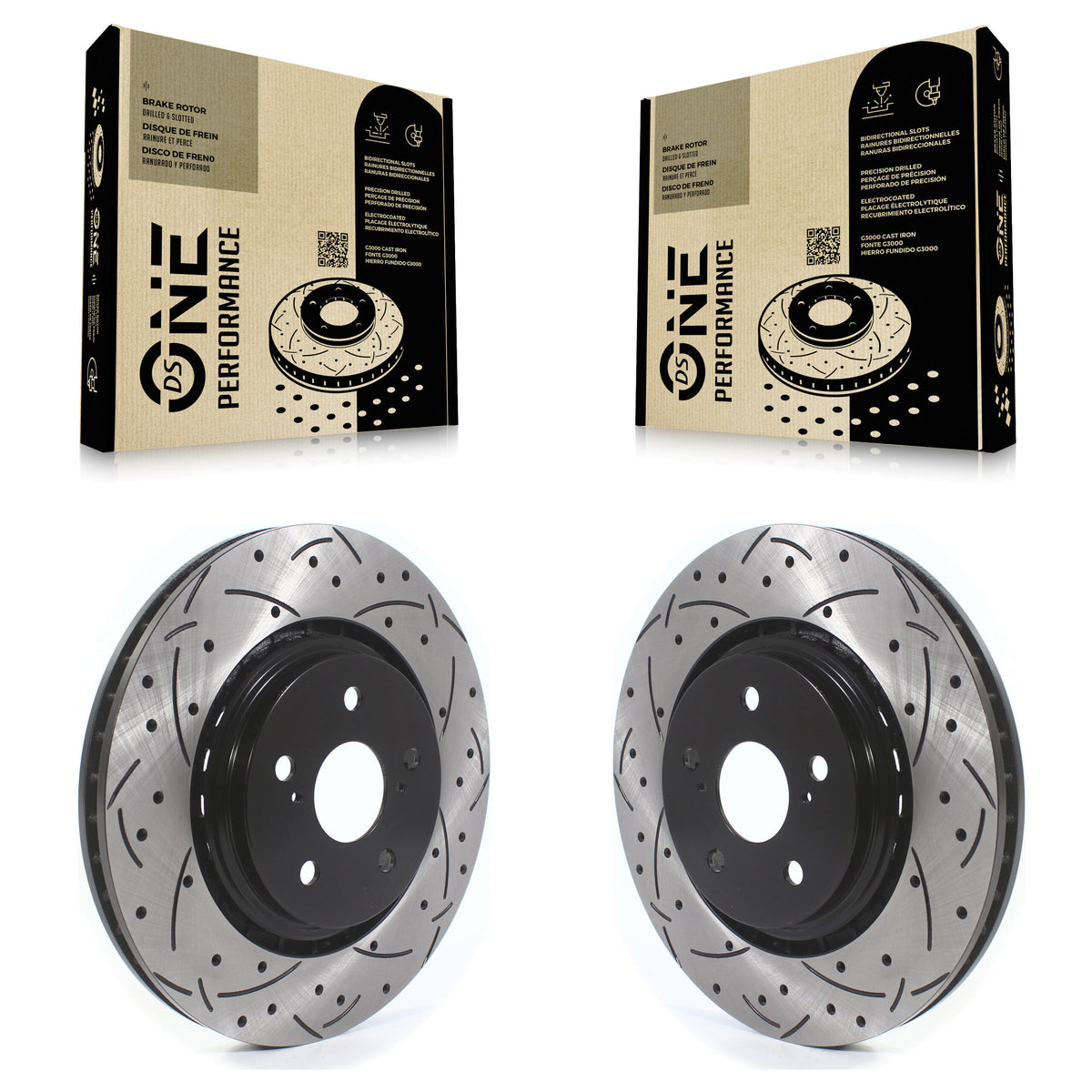 Front Coated Drilled Slotted Disc Brake Rotors Pair For Lexus RX350 RX450h Toyota RX350L Camry RX450hL Avalon NX250 NX350 NX350h KD-100406