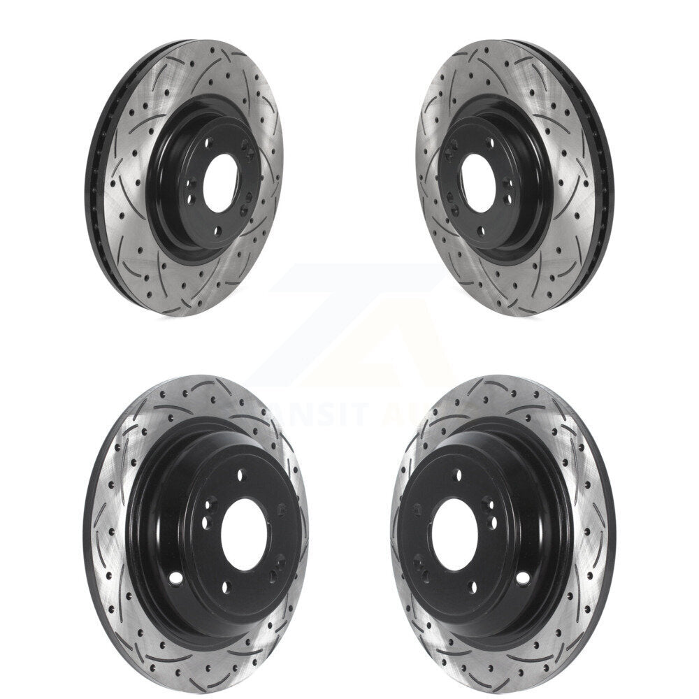 Front Rear Coated Drilled Slotted Disc Brake Rotors Kit For Hyundai Genesis KD-100490