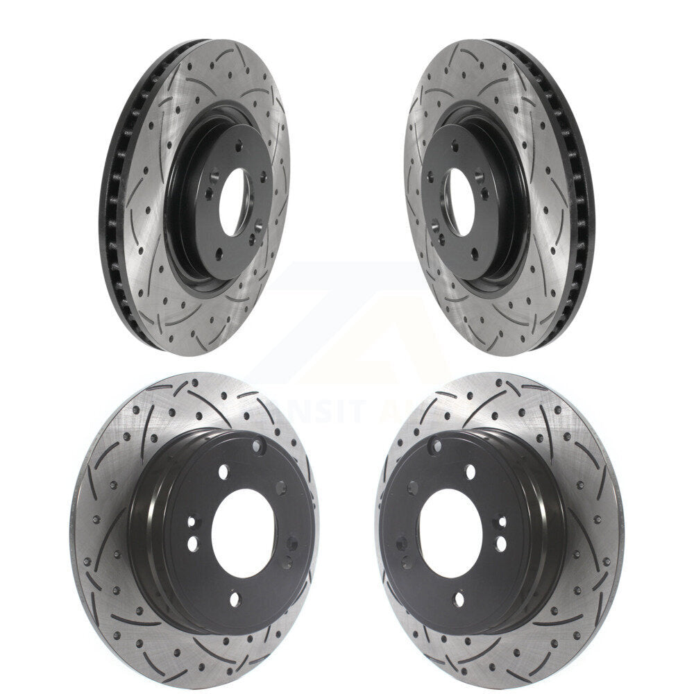 Front Rear Coated Drilled Slotted Disc Brake Rotors Kit For Kia Optima Hyundai Tucson Azera Cadenza KD-100499