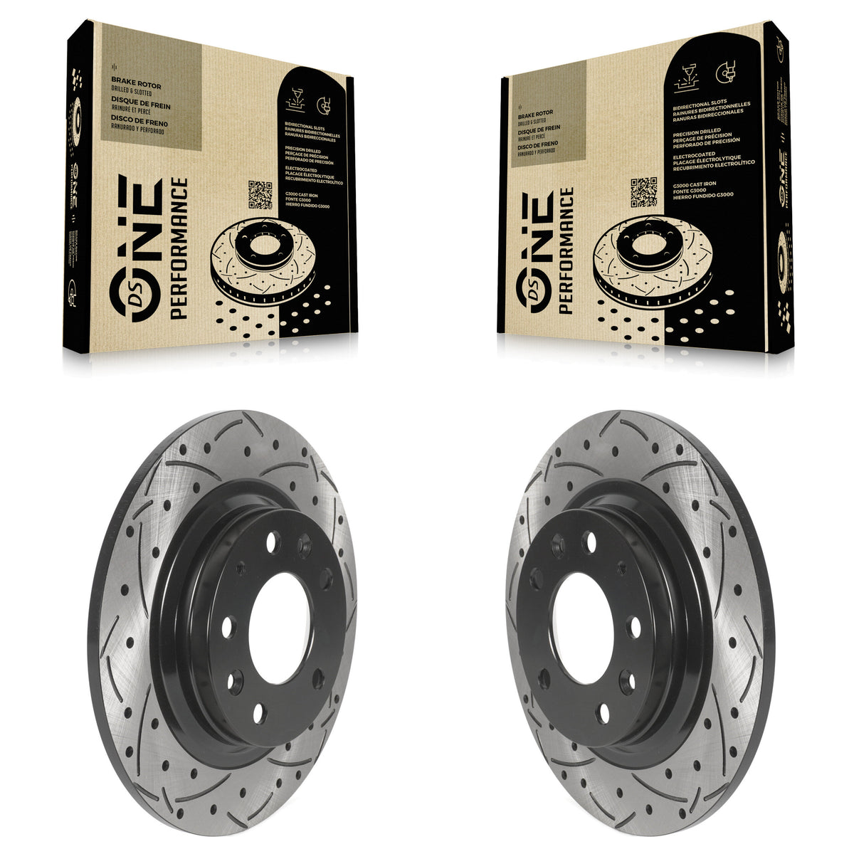 - 2x Rear Coated Drilled Slotted DS-One Disc Brake Rotor (Both Sides)
