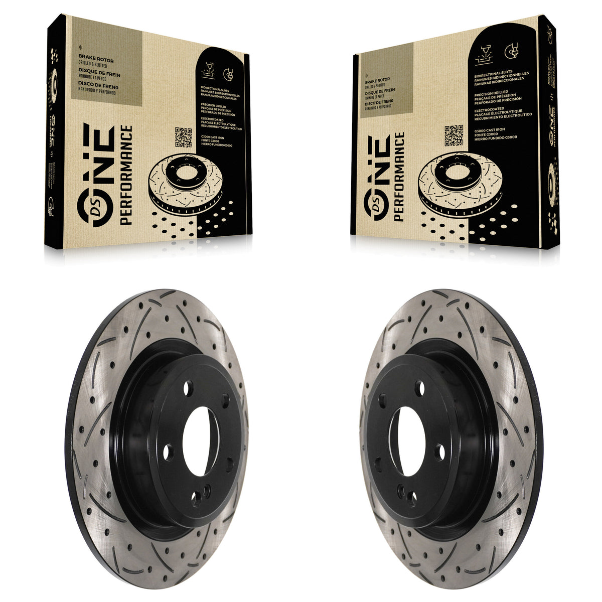 - 2x Rear Coated Drilled Slotted DS-One Disc Brake Rotor (Both Sides)