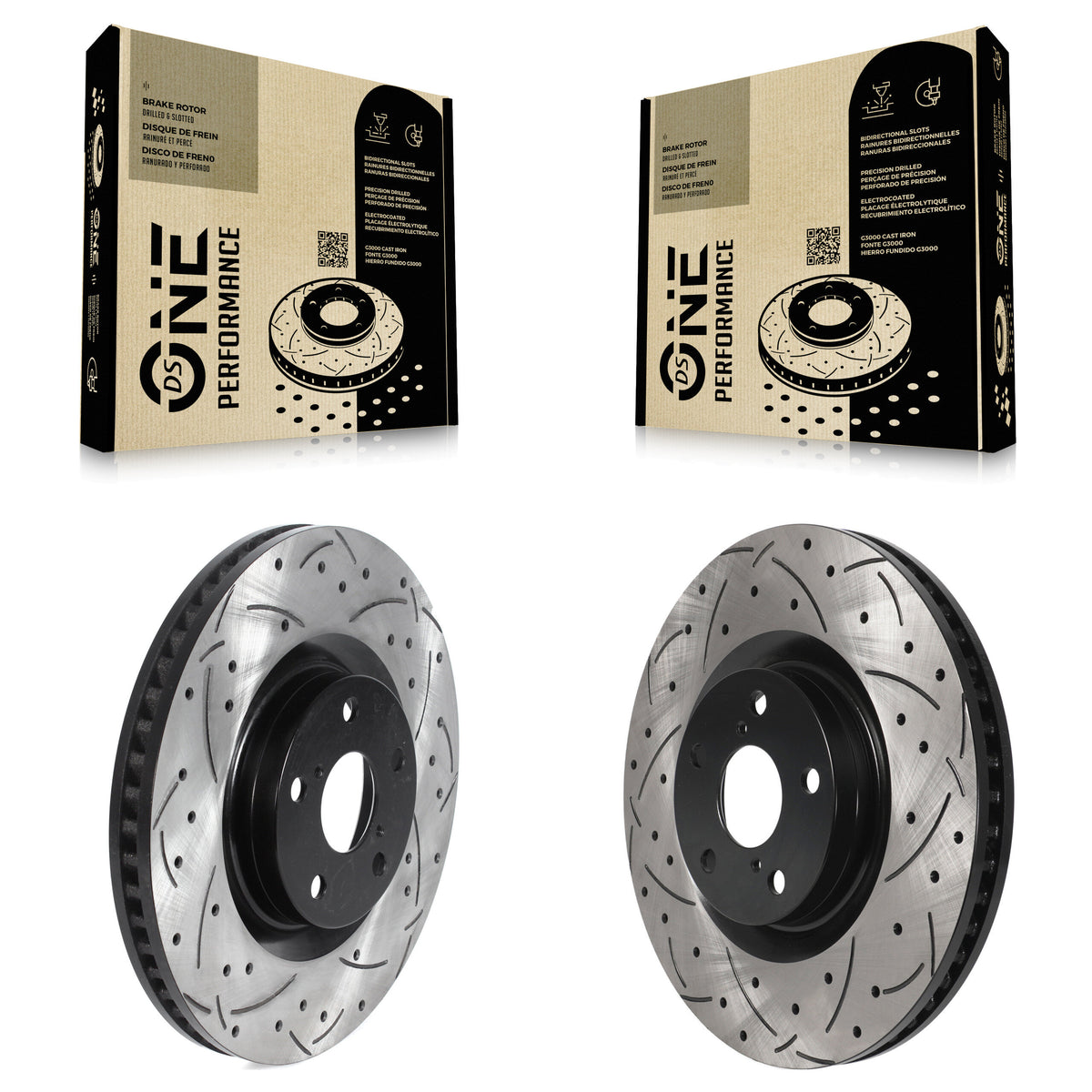 - 2x Front Coated Drilled Slotted DS-One Disc Brake Rotor (Both Sides)