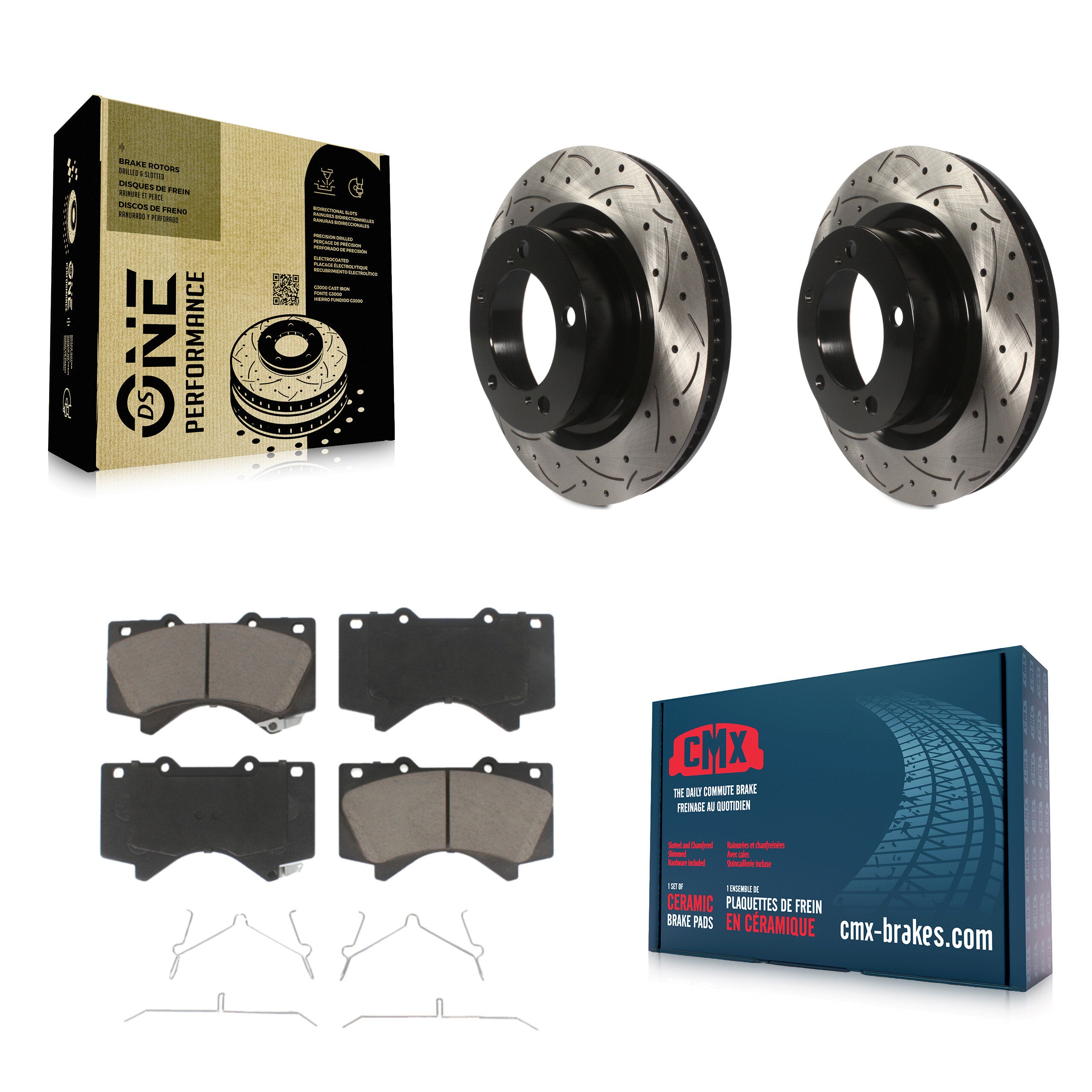 Front Coated Drilled Slotted Disc Brake Rotors And Ceramic Pads Kit For Toyota Tundra Sequoia Lexus LX570 Land Cruiser KDC-100013