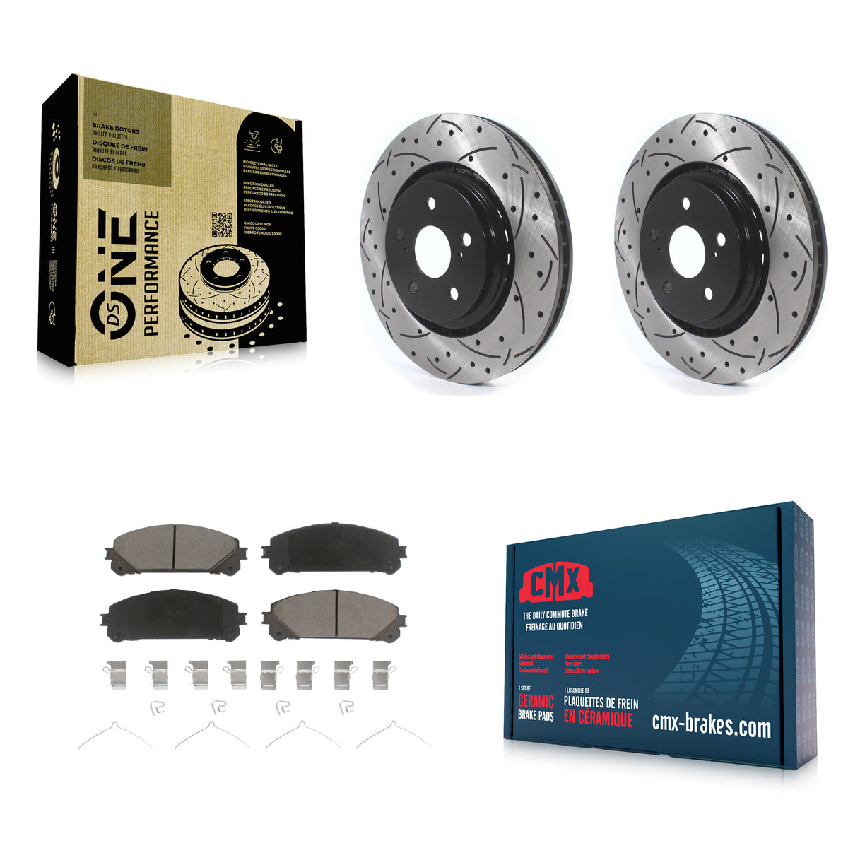 - 2x Front Coated Drilled Slotted DS-One Disc Brake Rotor (Both Sides)