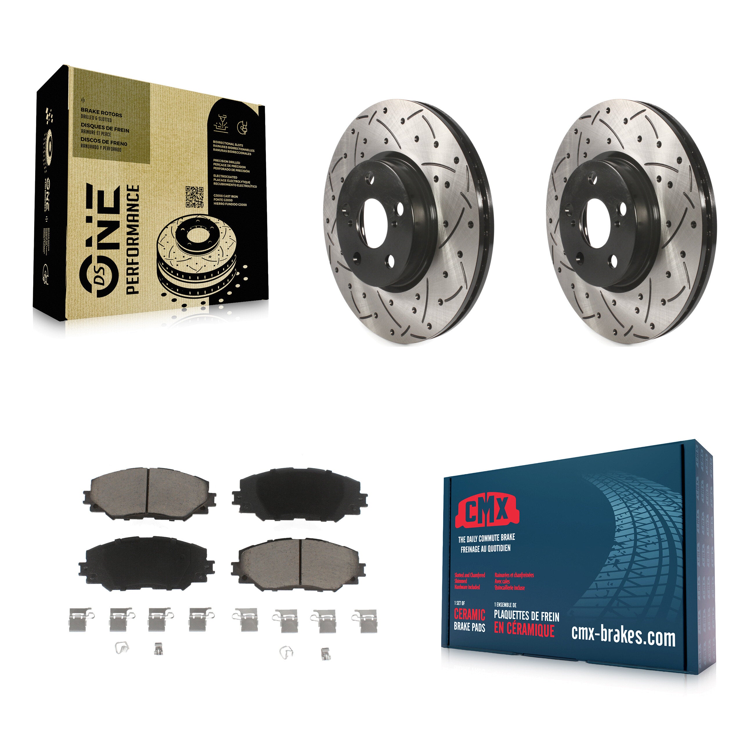- 2x Front Coated Drilled Slotted DS-One Disc Brake Rotor (Both Sides)