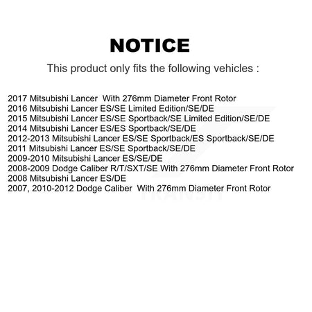 Front Coated Drilled Slotted Disc Brake Rotors And Ceramic Pads Kit For Dodge Caliber Mitsubishi Lancer KDC-100218