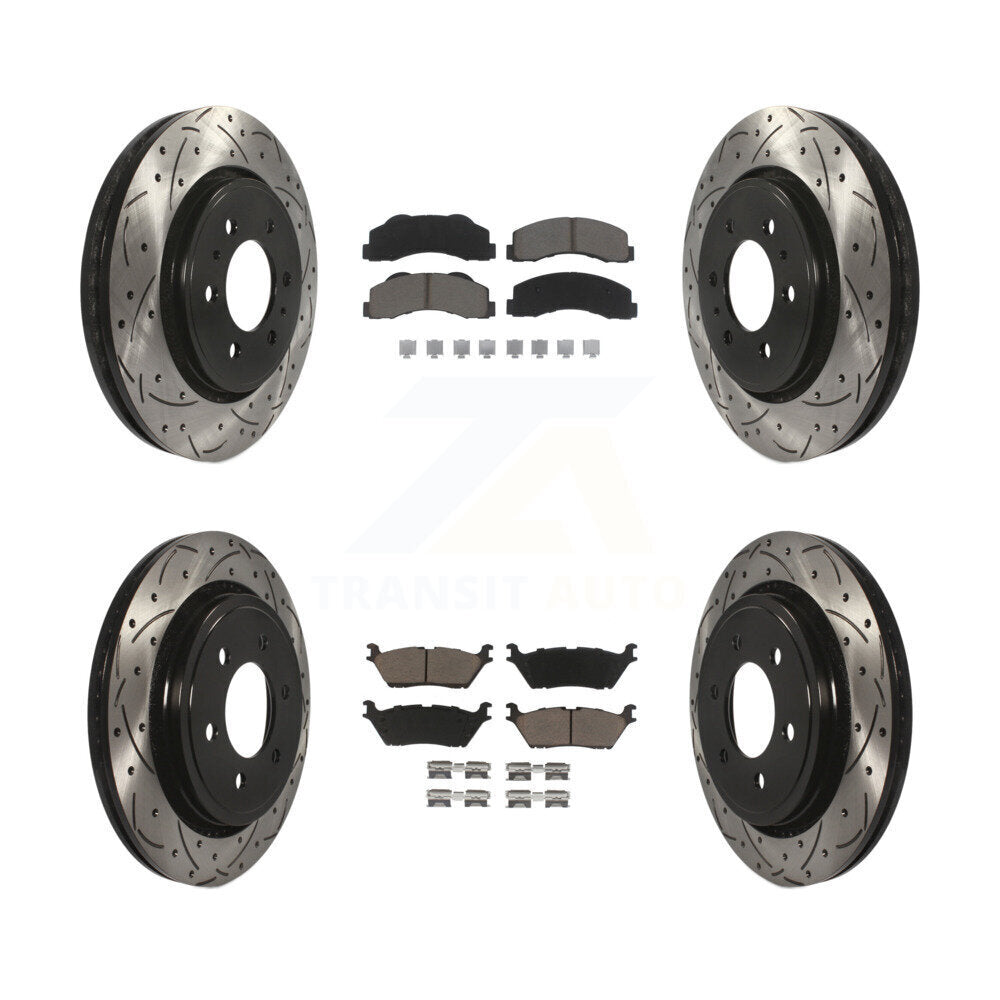 Front Rear Coated Drilled Slotted Disc Brake Rotors And Ceramic Pads Kit For 2015-2017 Ford F-150 With Electric Parking KDC-100291
