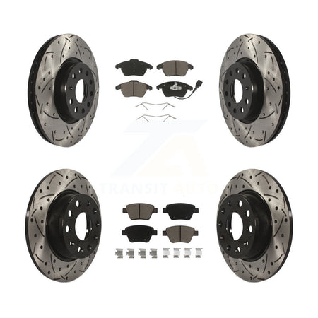 Front Rear Coated Drilled Slotted Disc Brake Rotors And Ceramic Pads Kit For Volkswagen Beetle GTI KDC-100297