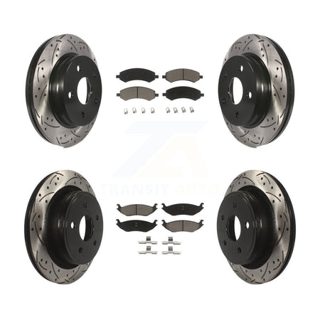 Front Rear Coated Drilled Slotted Disc Brake Rotors And Ceramic Pads Kit For Ram 1500 Dodge Classic Durango Chrysler Aspen KDC-100309