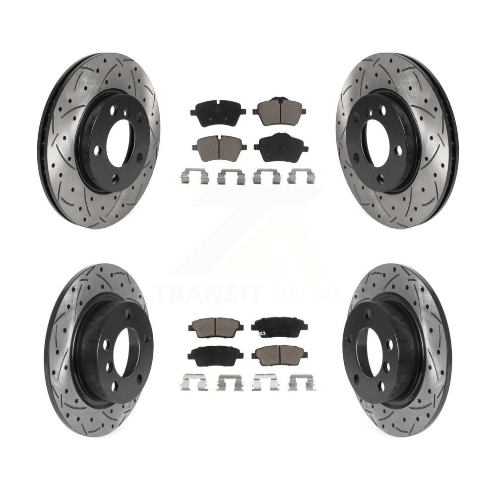 Front Rear Coated Drilled Slotted Disc Brake Rotors And Ceramic Pads Kit For Mini Cooper Countryman Paceman Base KDC-100372