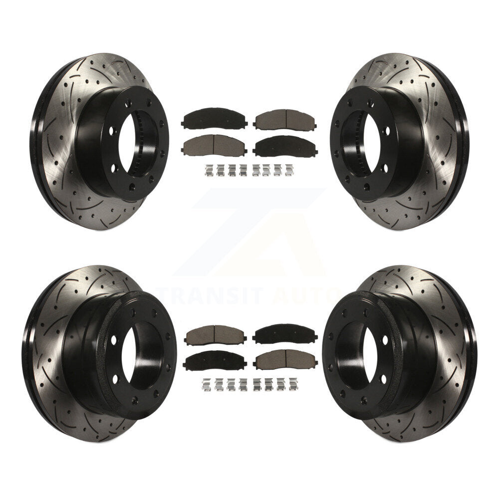 Front Rear Coated Drilled Slotted Disc Brake Rotors And Ceramic Pads Kit For Ford F-250 Super Duty F-350 4WD KDC-100568
