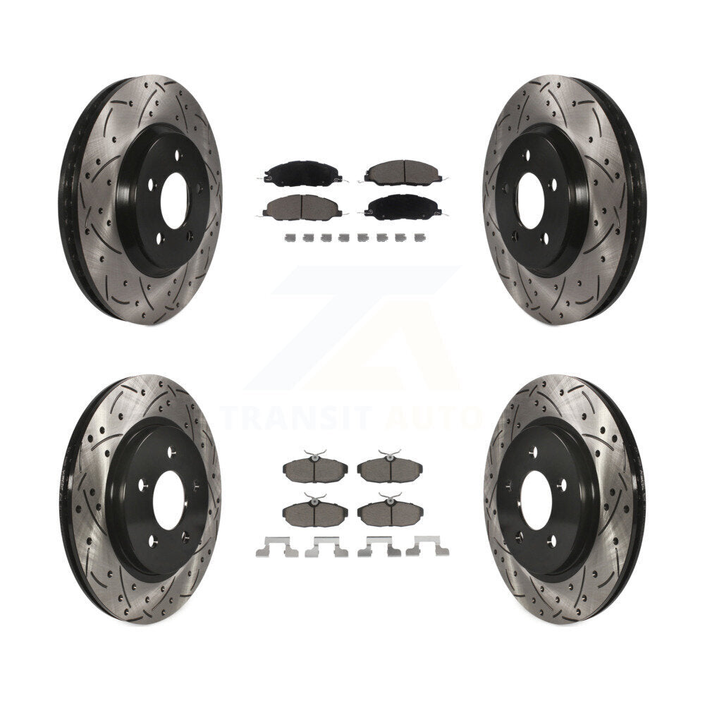 Front Rear Coated Drilled Slotted Disc Brake Rotors And Ceramic Pads Kit For Ford Mustang KDC-100639
