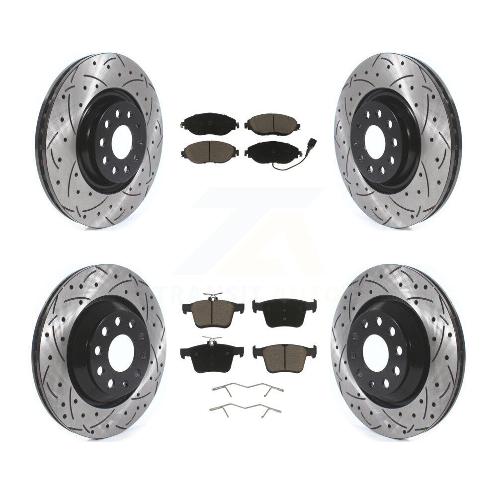 Front Rear Coated Drilled Slotted Disc Brake Rotors And Ceramic Pads Kit For Audi Volkswagen Golf R S3 Q3 Arteon KDC-100651