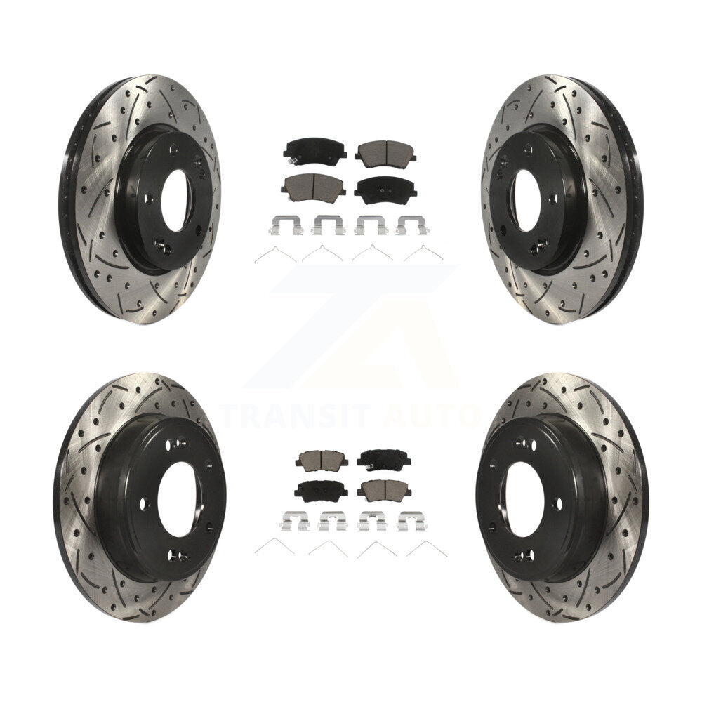 Front Rear Coated Drilled Slotted Disc Brake Rotors And Ceramic Pads Kit For 2017-2020 Hyundai Elantra 2.0L KDC-100666