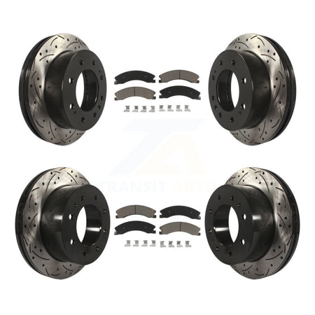 Front Rear Coated Drilled Slotted Disc Brake Rotors And Ceramic Pads Kit For Chevrolet Silverado 2500 HD GMC Sierra 3500 Suburban KDC-100667