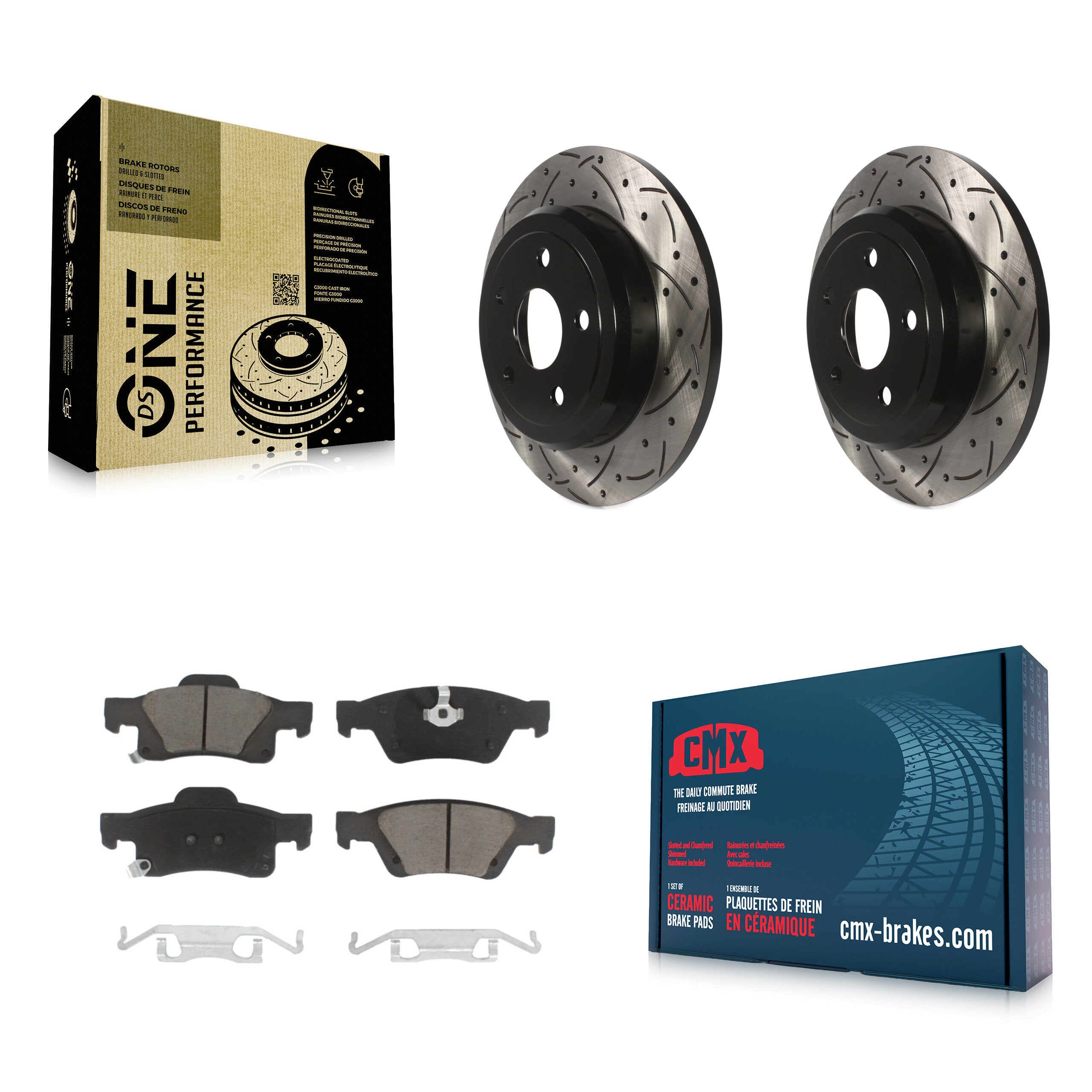 - 2x Rear Coated Drilled Slotted DS-One Disc Brake Rotor (Both Sides)