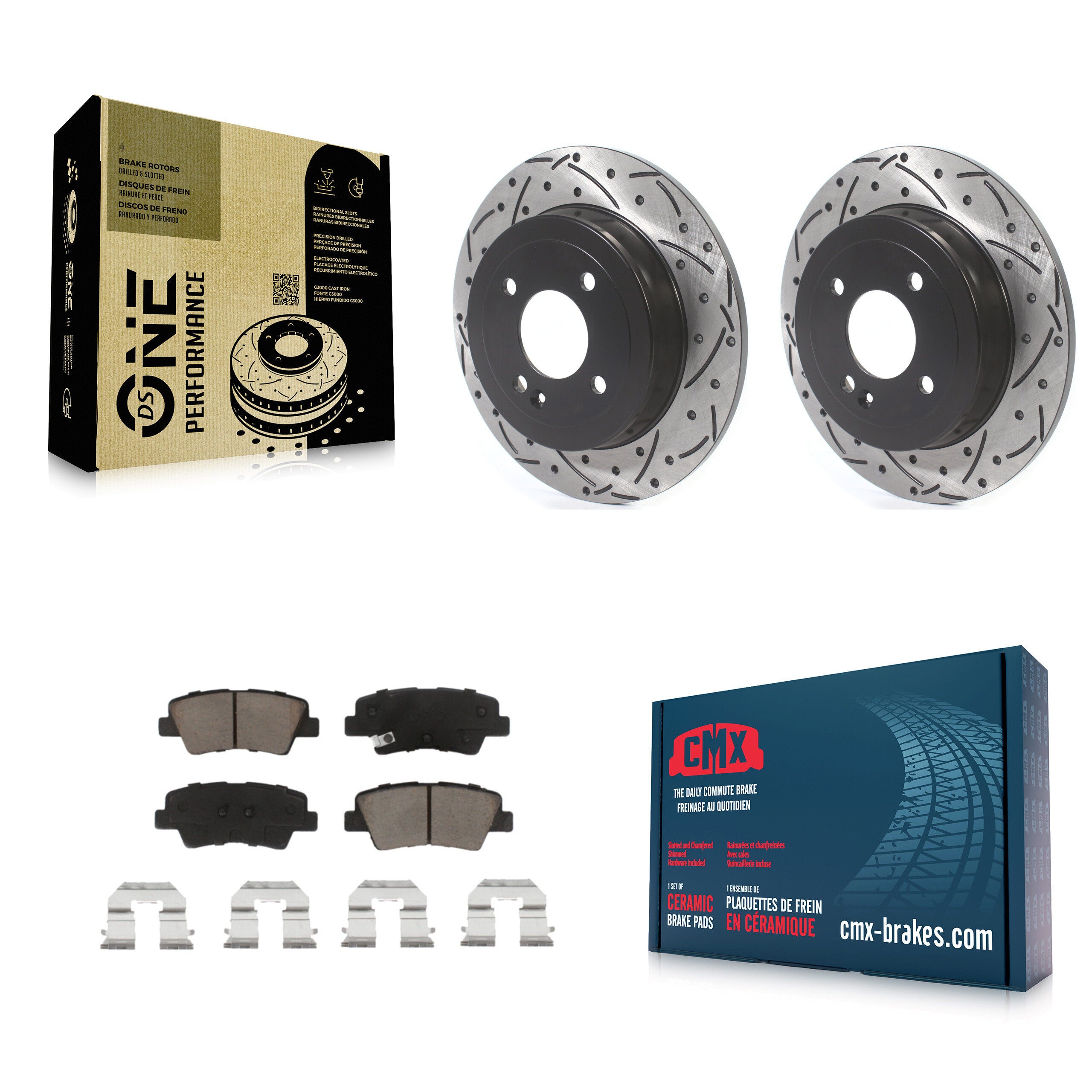 - 2x Rear Coated Drilled Slotted DS-One Disc Brake Rotor (Both Sides)