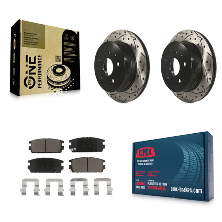 Rear Coated Drilled Slotted Disc Brake Rotors And Ceramic Pads Kit For 2010-2017 Chevrolet Equinox GMC Terrain KDC-100918