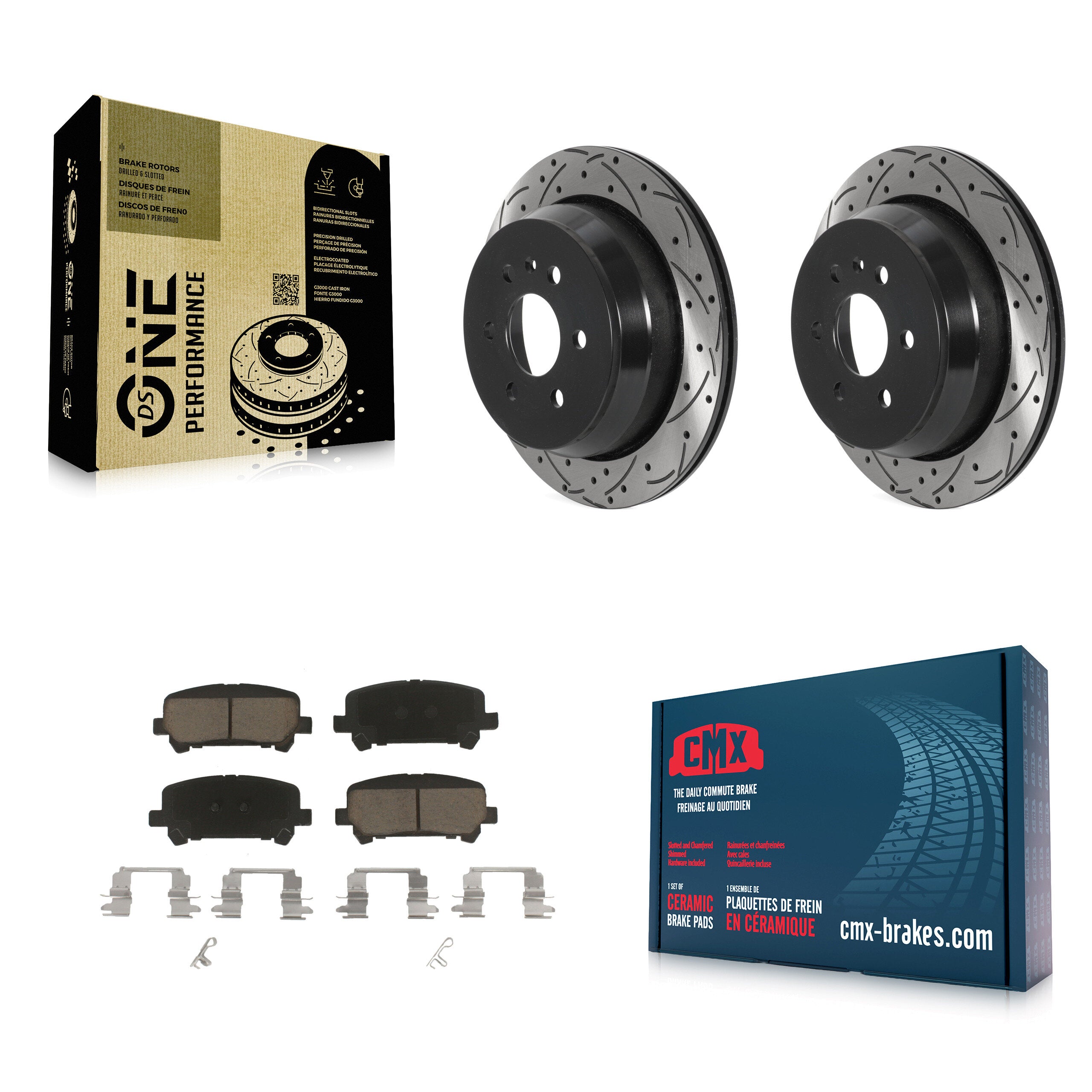 Rear Coated Drilled Slotted Disc Brake Rotors And Ceramic Pads Kit For 2015-2020 Chevrolet Colorado GMC Canyon KDC-100921