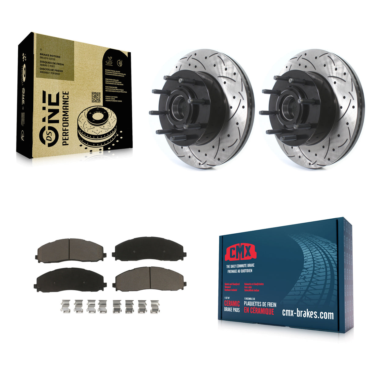 Front Coated Drilled Slotted Disc Brake Rotors Hub Assembly And Ceramic Pads Kit For Ford F-250 Super Duty F-350 KDC-100934
