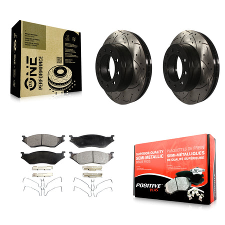 Front Coated Drilled Slotted Disc Brake Rotors And Semi-Metallic Pads Kit For Ford F-450 Super Duty F-550 International CF500 CF600 KDF-100020