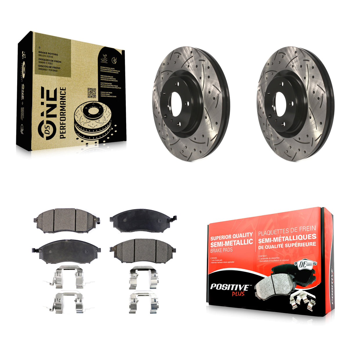 - 1x Front Semi-Metallic Positive Plus Brake Pad Set (Hardware Included)