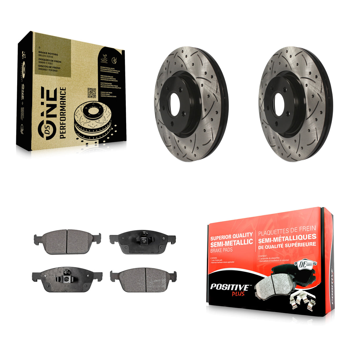 Front Coated Drilled Slotted Disc Brake Rotors And Semi-Metallic Pads Kit For Ford Escape Connect Lincoln MKC KDF-100106