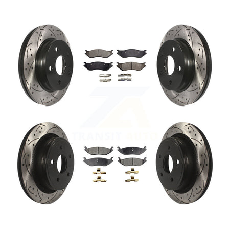 Front Rear Coated Drilled Slotted Disc Brake Rotors And Semi-Metallic Pads Kit For Dodge Durango Ram 1500 KDF-100245