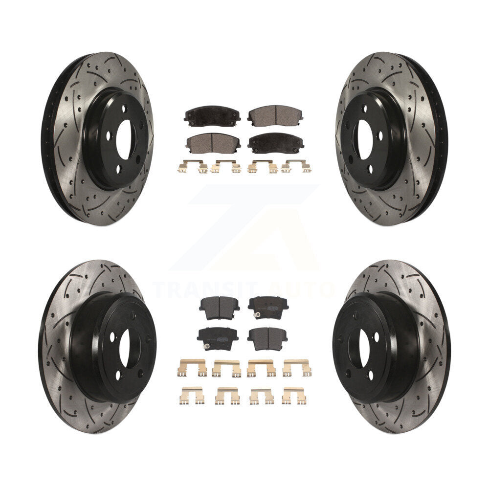 Front Rear Coated Drilled Slotted Disc Brake Rotors And Semi-Metallic Pads Kit For Dodge Charger Chrysler 300 Challenger Magnum KDF-100246